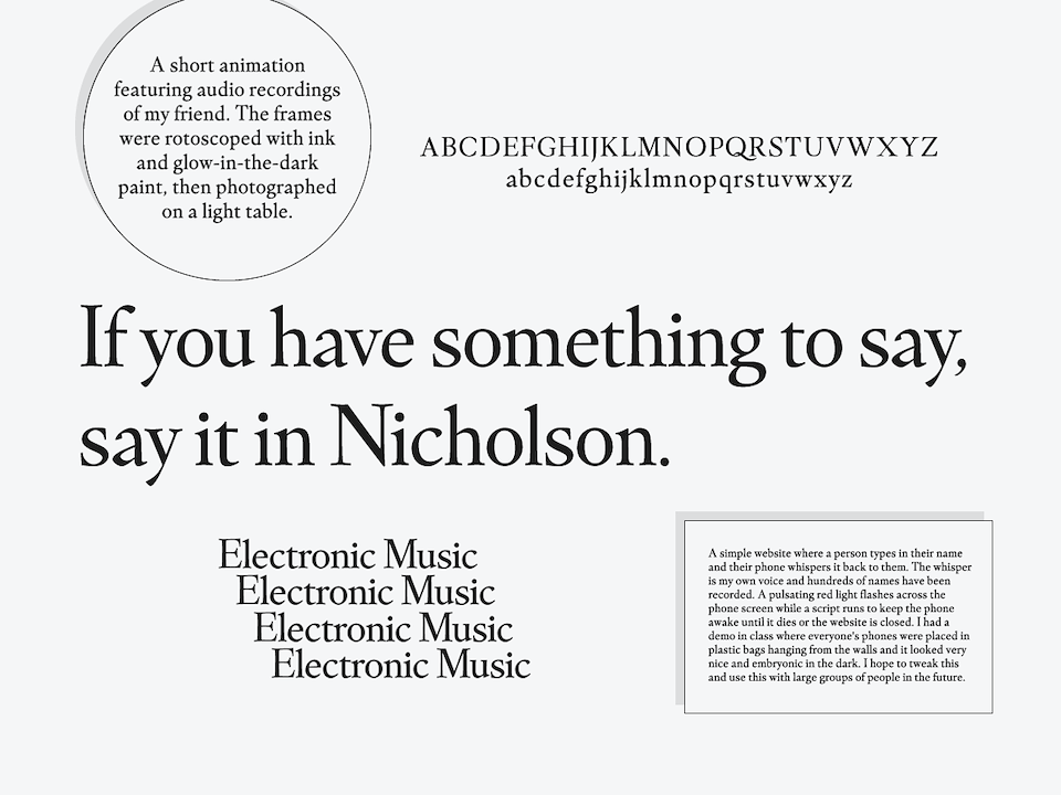 This is a serif typeface that I started in Hannes Famira’s semester-long Type Design course at The Cooper Union. It is still far from complete!