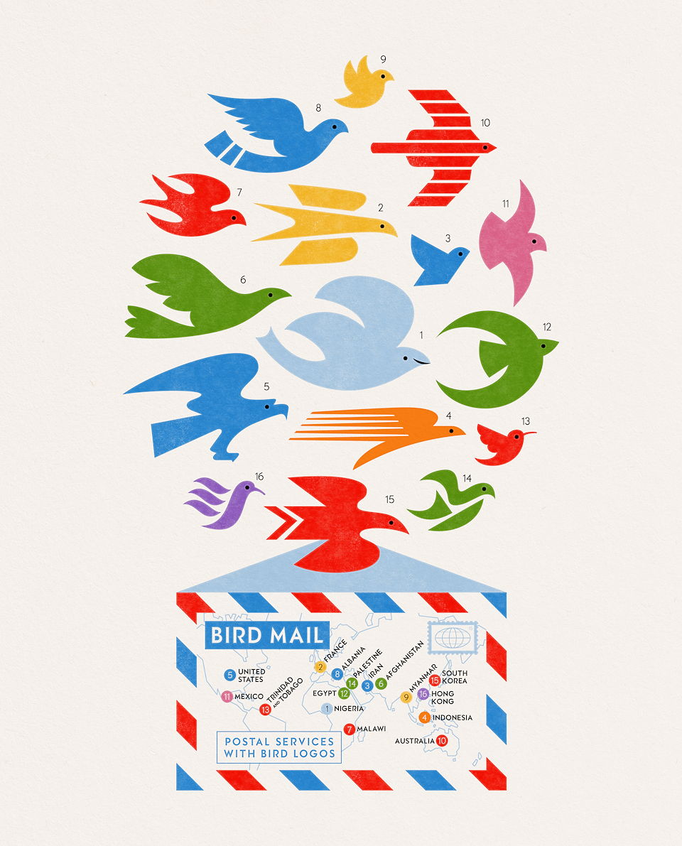 Around the world, birds deliver the mail! A collection of national postal services that use bird logos.