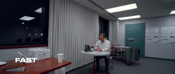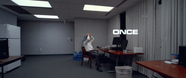 Title screen for the lyric video, which is set in a bank office