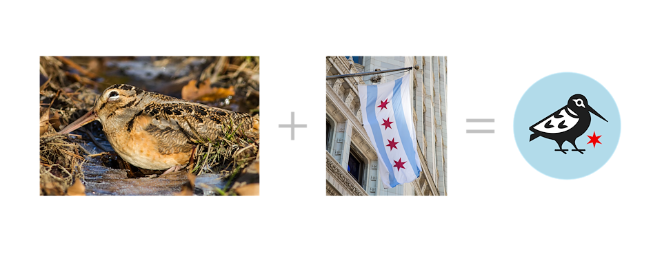 American Woodcock + Chicago flag = Chicago Ornithological Society logo. Photos: Fyn Kynd/Flickr (CC BY 2.0), ale72/iStock